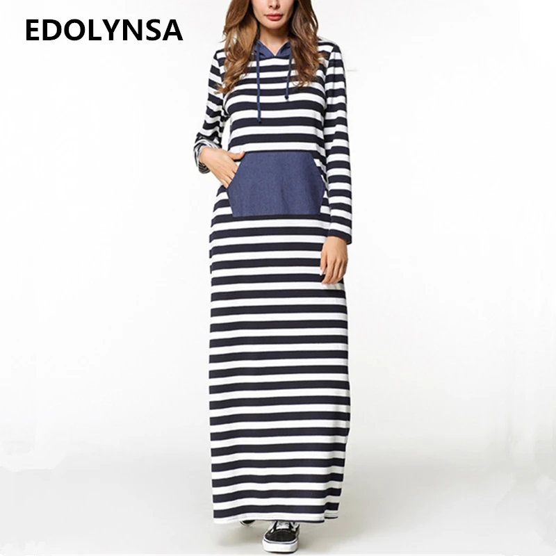 4.7 108 Video Reviews 2017 Brand Fashion Striped Maxi Dress With Hat Casual Summer Dress With Denim Pocket Elegant Dresses Long Womens Clothing #D307 womens-long-maxi-dresses
