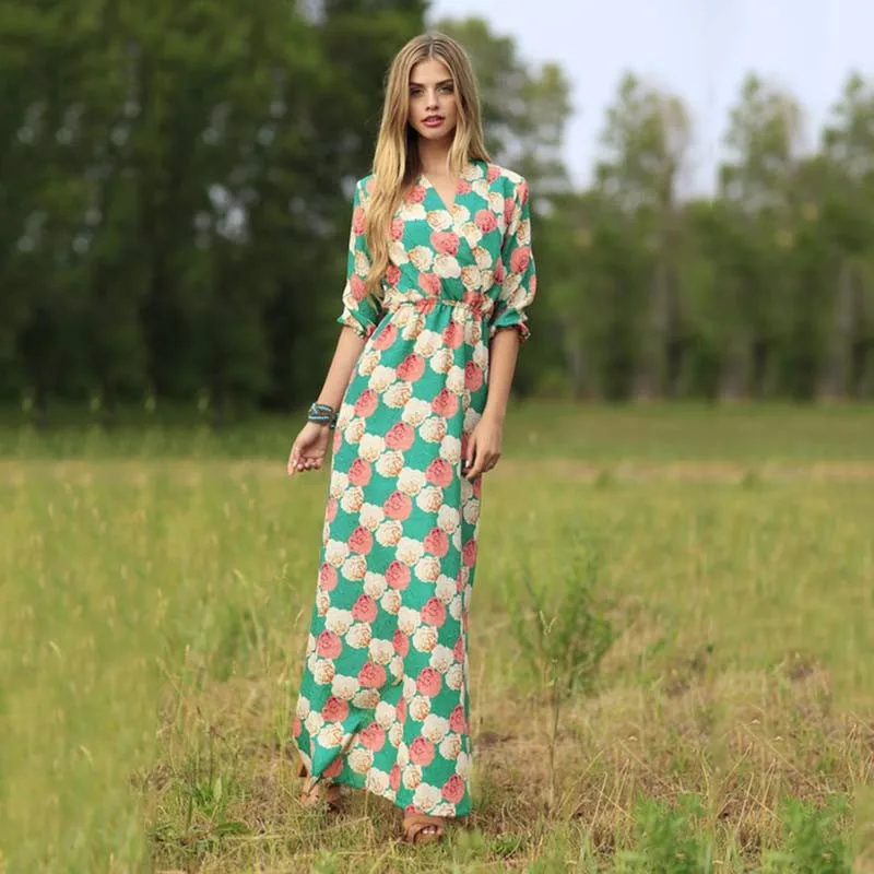 >> Buy Click! <<Women Floral Printed Maxi Dress Casual Summer Long Dress Boho V Neck Half Sleeve Zipper Tunic Side Split Wrap Dress womens-long-maxi-dresses