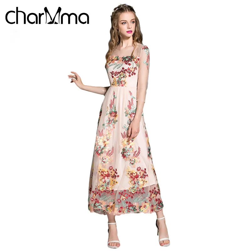 4.6 106 Video Reviews CharMma Summer Dresses Women Elegant Embroidered Flower Gauze Long Dress Mujer Applique A line Maxi Dress De Festa 2017 womens-long-maxi-dresses
