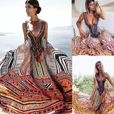 >> Cheap Click! <<Vintage Women's Boho Floral V Neck Long Maxi Dress Summer Beach Party Sundress womens-long-maxi-dresses