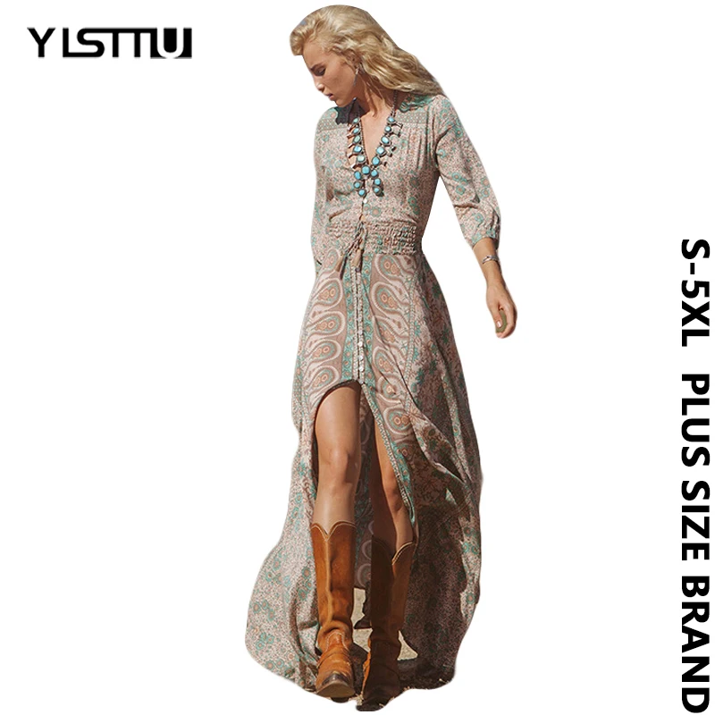 >> Unparalleled Click! <<YISTTU Summer Boho Beach Dress Plus Size 4XL 5XL Vintage Women Floral Print Maxi Dress Half Sleeve Bohemian Long Party Vestidos womens-long-maxi-dresses
