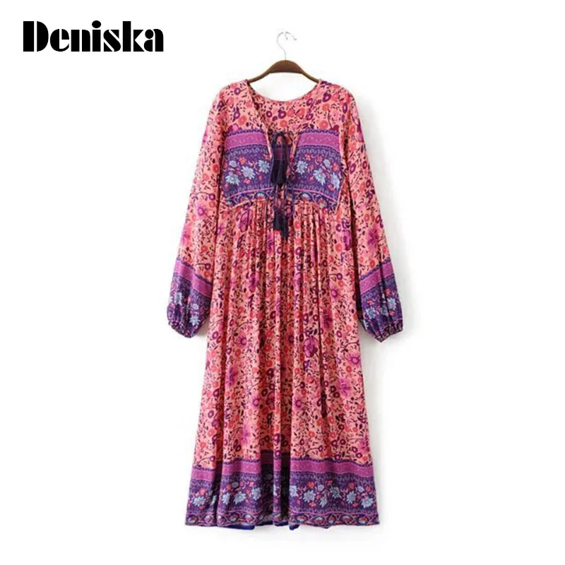 High Quality Gypsy Ethnic Maxi Dresses 2017 Spring Summer Tribe Style V Neck Bohemian Floral Print Long Sleeve Women Boho Dress womens-long-maxi-dresses