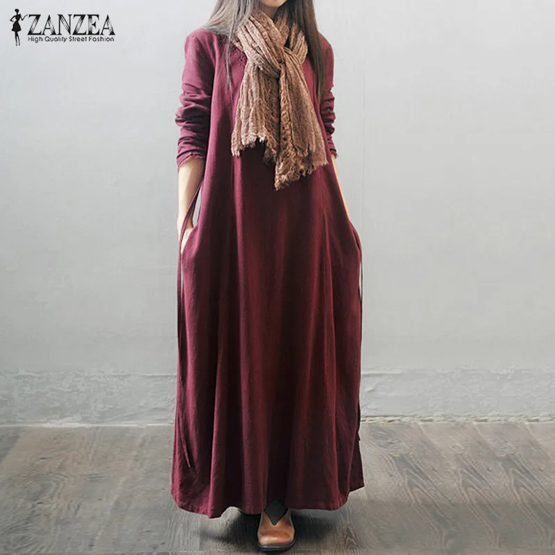 >> Undisputed Click! <<Oversized 2017 Autumn ZANZEA Women Vintage Long Maxi Dress Long Sleeve Casual Loose Solid Elegant Ankle-length Dress Vestidos womens-long-maxi-dresses