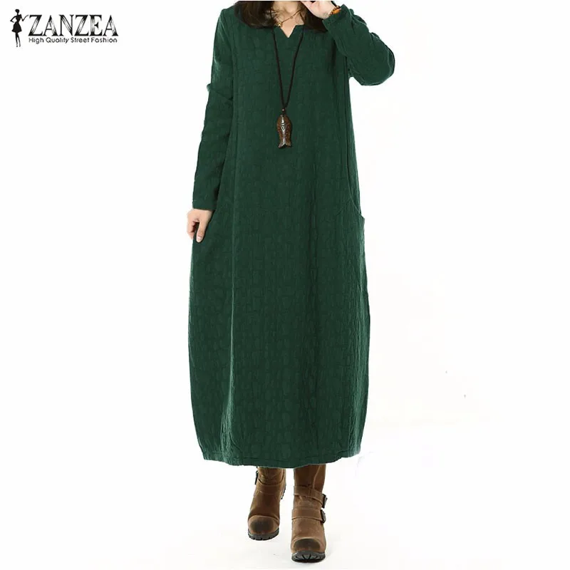Vestidos 2017 Autumn ZANZEA Women Vintage Cotton Linen Dress Long Maxi Dress Long Sleeve Casual Loose V Neck Dresses Oversized womens-long-maxi-dresses