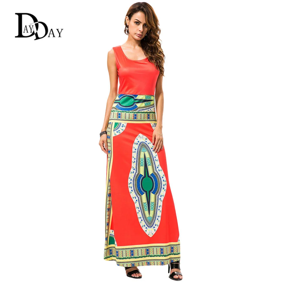 4.5 102 Video Reviews 2017 High Quality African printed Red Dashiki Dress Ethnic Style Women Long Maxi Dresses Beach wear Sleeveless Tank Dress C189 womens-long-maxi-dresses