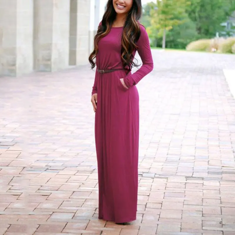 4.7 98 Video Reviews 2017 Ladies Fashion Woman Fashion Dress Pocket Vestidos High Waist Long Sleeve Lady Long Maxi Dress Longue Autumn Vestidos womens-long-maxi-dresses