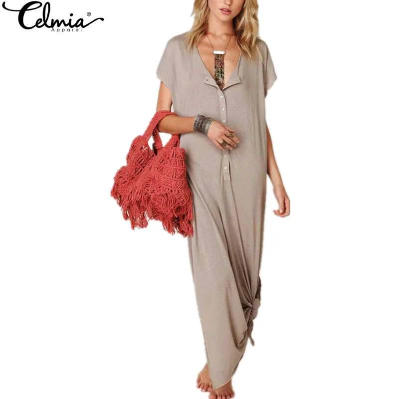 4.8 101 Video Reviews CELMIA Casual Solid Long Summer Dress 2017 Ladies Short Sleeve O-neck Side Split Loose Beach Maxi Dresses Plus Size Vestidos womens-long-maxi-dresses